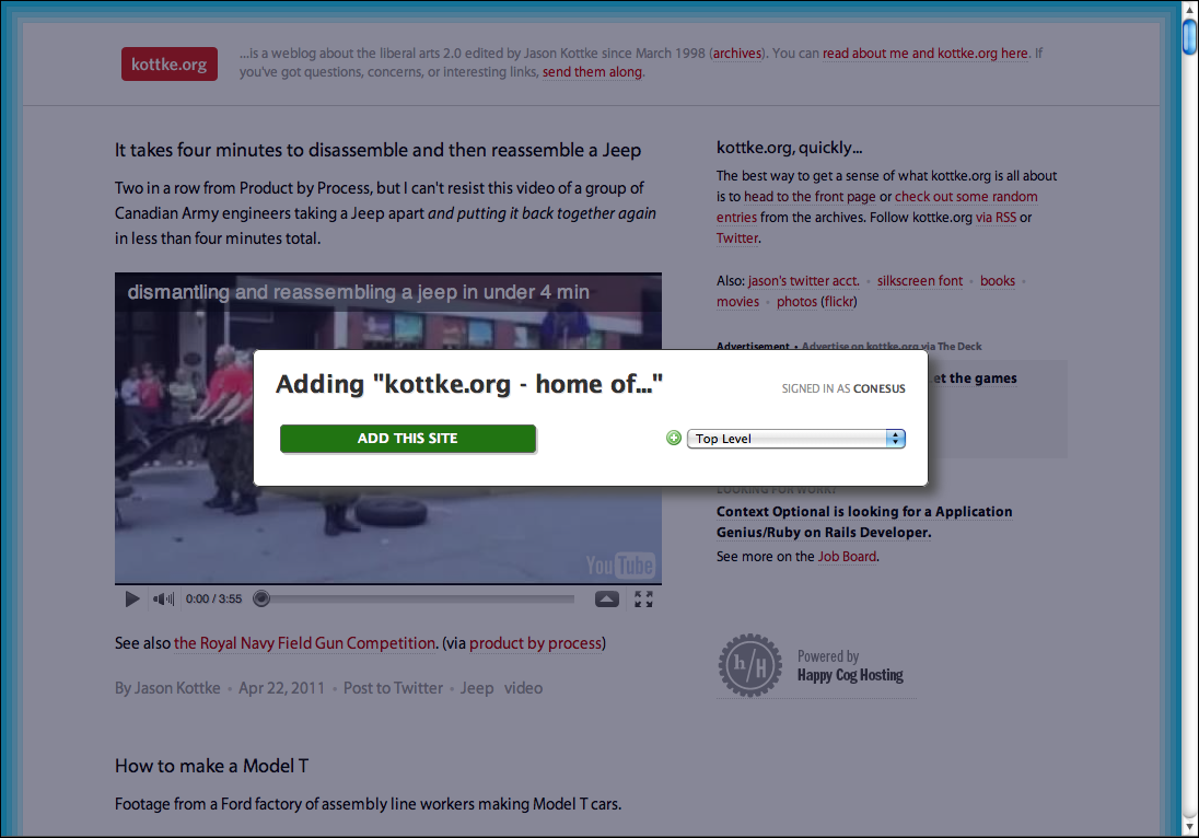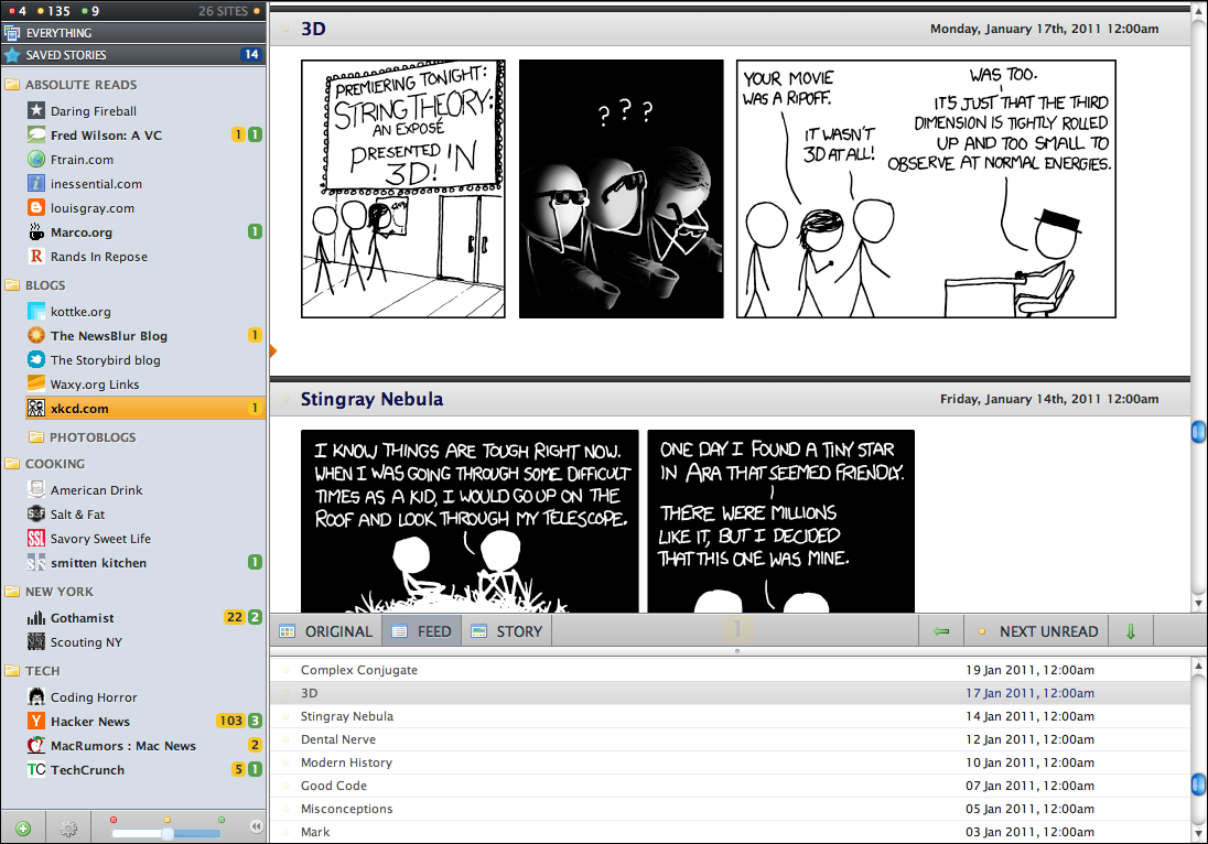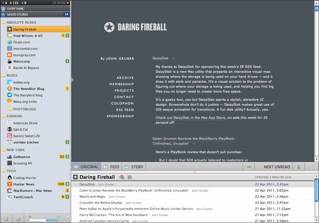 NewsBlur online RSS reader that Displays the Actual Web Site